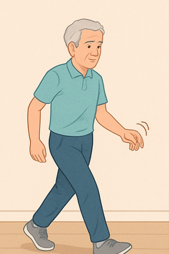 가능하면 팔을 크게 흔들며 활보하듯 걷기를 시도해보세요.