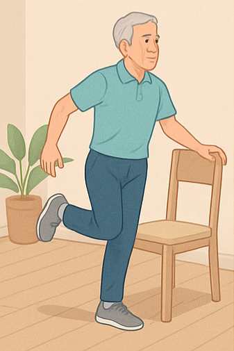 벽이나 의자 등을 보조로 사용하면 안전하게 연습할 수 있습니다.