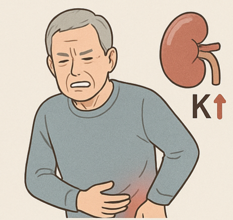 고칼륨혈증 (Hyperkalemia): 심장 박동 이상, 근육 약화, 무기력 등을 초래할 수 있으며, 심각할 경우 치명적일 수 있습니다.