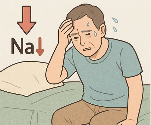 저나트륨혈증 (Hyponatremia): 가장 흔한 전해질 불균형 중 하나로, 혼란, 피로, 근육 경련, 심한 경우 발작이나 의식 저하를 유발할 수 있습니다.