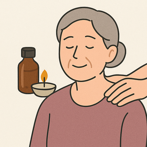 향기 치료(아로마테라피)는 불안과 스트레스를 완화하는 데 도움이 될 수 있습니다. 또한, 부드러운 마사지나 지압은 근육 이완과 혈액 순환 개선에 기여할 수 있으며, 일부 환자들은 수면 개선에 효과를 경험했다고 보고합니다.