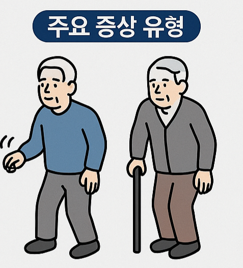 파킨슨병은 크게 두 가지 증상 유형으로 나뉩니다: