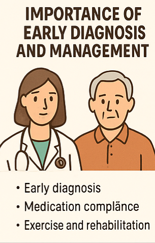 - 정서적 지지: 우울증이나 불안증이 동반될 수 있으므로 가족과의 소통과 지지 치료가 중요합니다.
