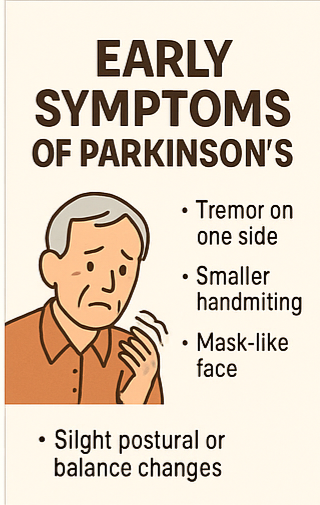 - 조기 진단: 손떨림, 느린 움직임, 글씨 변화 등이 있다면 신경과 상담을 권장드립니다.