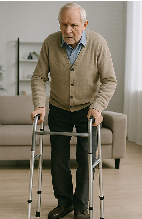 - 걸음걸이가 느려지고, 자세가 불안정해짐