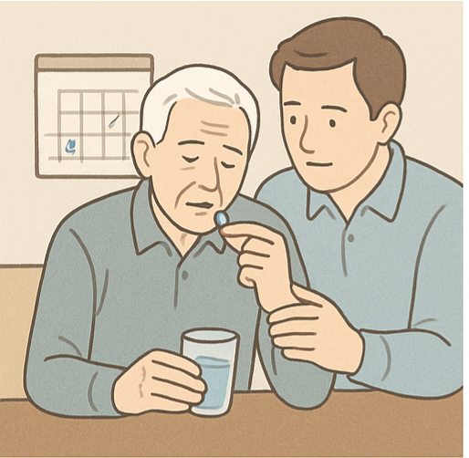 약물은 정확한 시간에 꾸준히 복용해야 효과를 볼 수 있습니다. 가족이 복약 시간 관리나 병원 방문 일정을 챙기는 것도 매우 중요합니다.